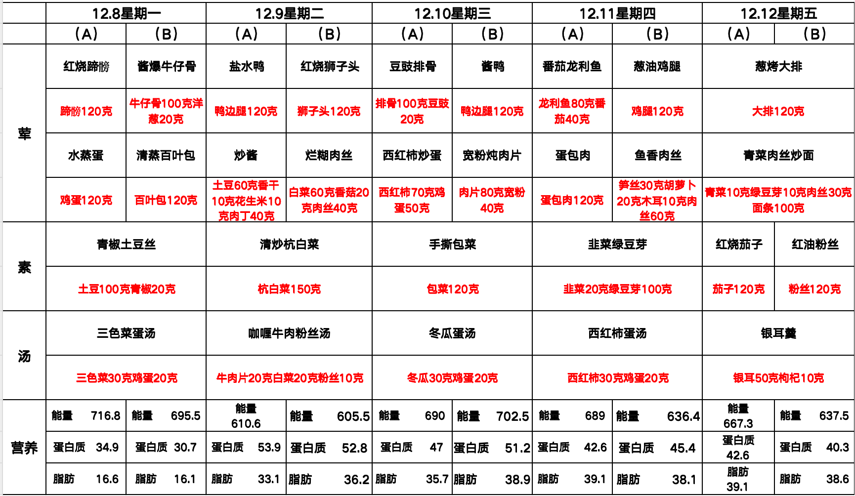 学生菜单12.8~12.12