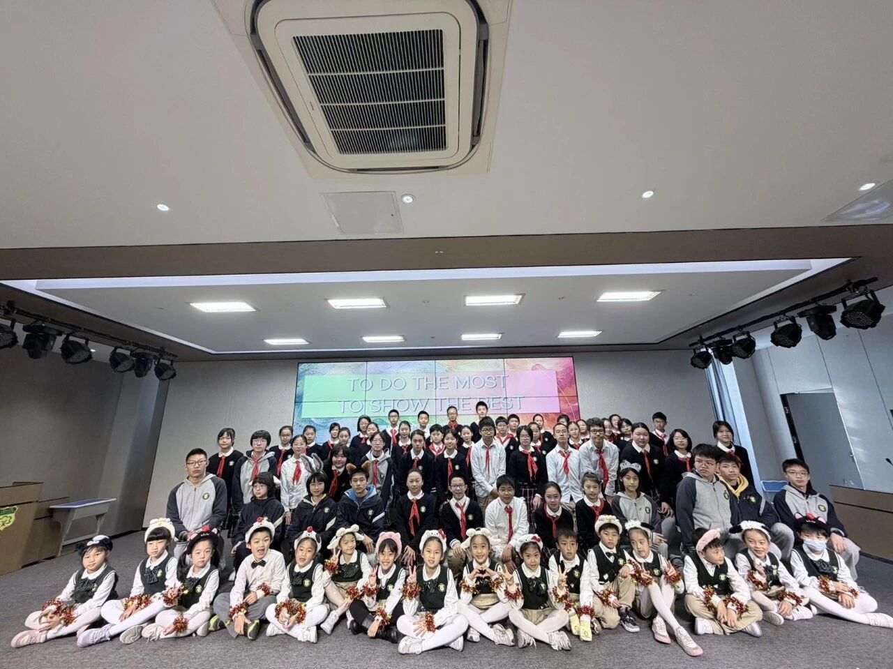 一二年级的同学们为大家带来的英语儿歌《I can make a circle》。这首儿歌用欢快的旋律和简单的英语词句,展现了形状的奇妙,也表现了一二年级小朋友活泼开朗、乐于探索的模样。八年级的同学们带来了精心准备的英语配乐诗朗诵。他们以流利地道的英文发音、饱满真挚的情感表达,生动诠释了团队协作的强大力量,不仅展现出中学生扎实的英语语言功底,更彰显了他们在英语表达中的自信风采与青春活力。九年级的同学们则带来了经典动画《疯狂动物城》的精彩配音表演。他们精准拿捏不同角色的语气与情感,用地道的英文台词将动画中的经典场景鲜活重现,不仅展现了扎实的英语语言功底,更凭借生动的演绎尽显出色的表演才能。六年级全体同学以班为单位,共同唱响了励志金曲《Try Everything》。整齐的歌声、挥舞的手臂,展现了同学们全力以赴、无畏探索的精神面貌,将现场气氛推向高潮。