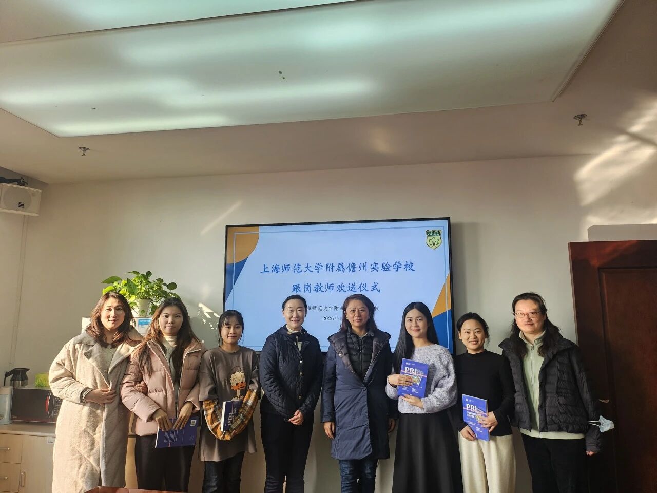 欢送会由校专职副书记吴悦主持。书记、校长方蕾在总结中高度肯定了跟岗教师们的学习热情与专业成长,赞扬大家全身心投入的研修姿态。她强调,此次交流是一次“经验共享、理念互融”的双向奔赴,期盼以跟岗为起点,持续深化三校在学科教研、特色课程等领域的长效合作。随后,方蕾校长向各位教师赠送《学科项目化学习:关键问题,关键课》一书。该书系统梳理了我校项目化学习的学科实践与典型课例,兼具理论指引与实操参考,助力老师们后续教学改革探索。活动最后,全体人员合影留念,一张照片,凝聚一段跨越山海的育人情缘。