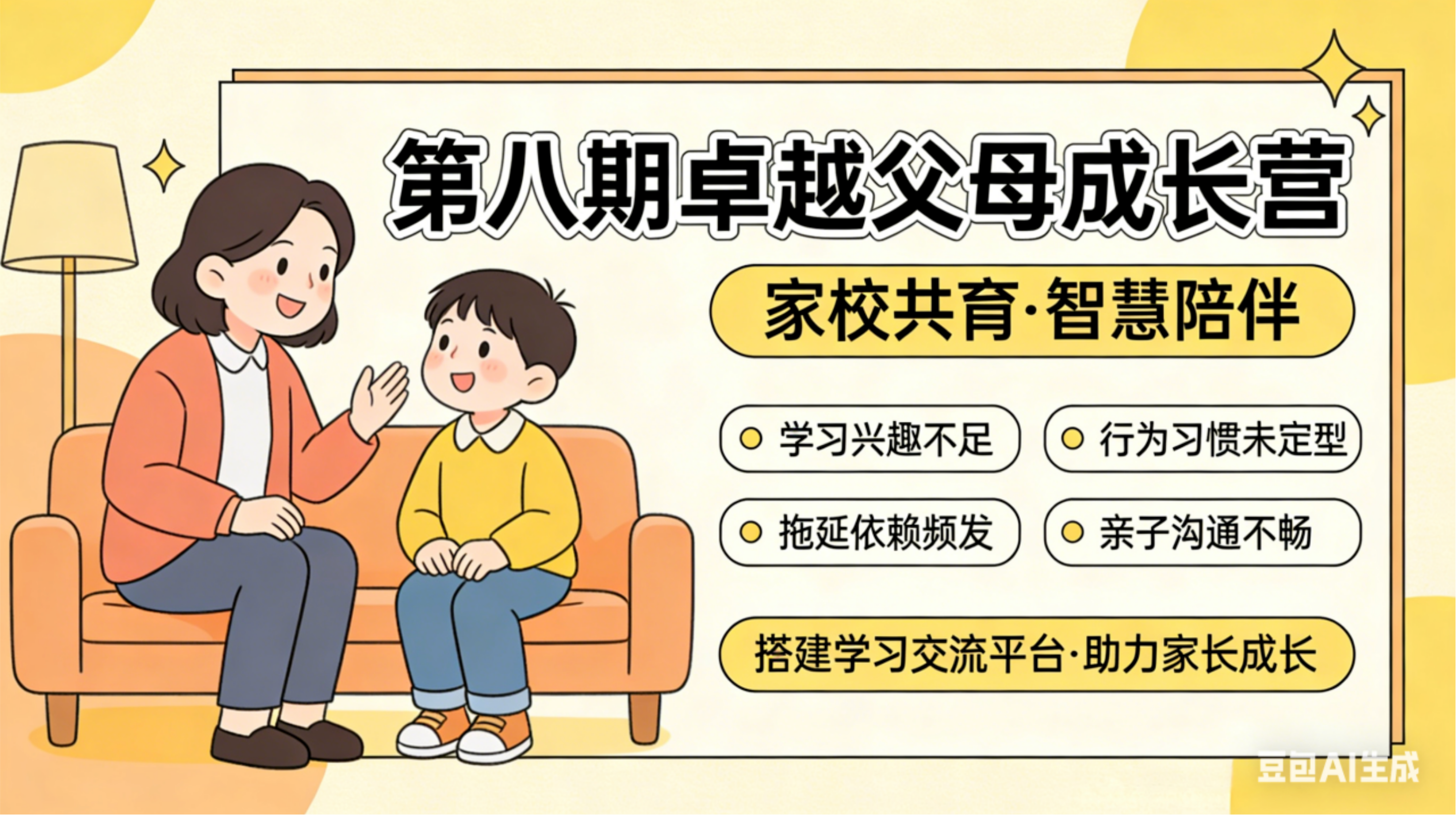 一直以来,我校始终秉持家校共育的核心理念,深耕和谐家庭教育环境构建,深知家长在孩子小学启蒙阶段的重要作用。为精准破解一、二年级家长面临的育儿难题——孩子学习兴趣不足、注意力不集中,行为习惯未定型、拖延依赖频发,亲子沟通不畅、隔阂渐生等问题,我校精心筹备,于2026年4月1日(周三)正式启动第八期“卓越父母成长营”,为家长们搭建学习交流、提升自我的平台,助力每一位家长成为孩子启蒙路上的智慧陪伴者。