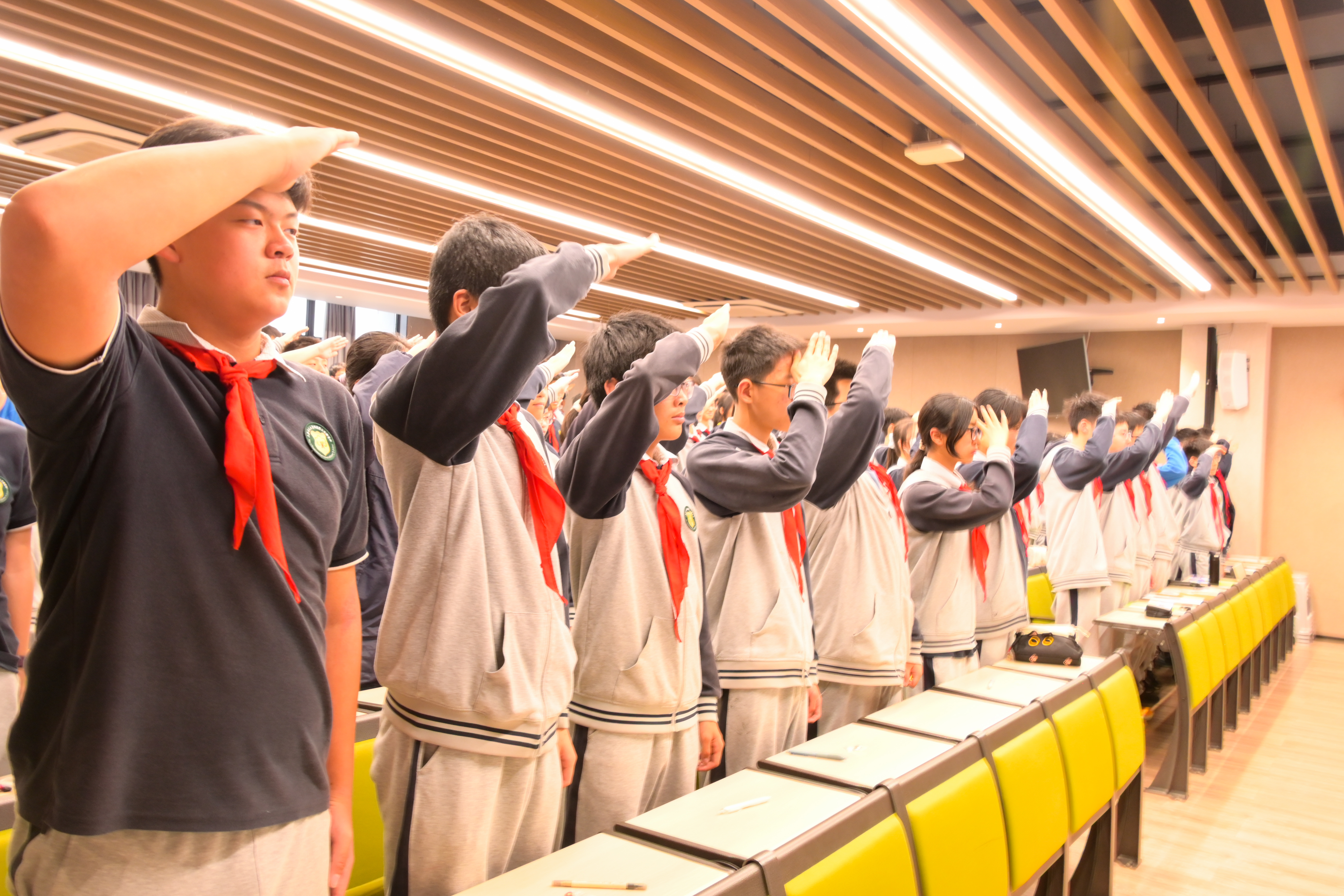 校领导为各中队主席授戴新队标志,各中队辅导员为全体队员授戴。小小标志换新,见证少年从稚嫩走向成熟。